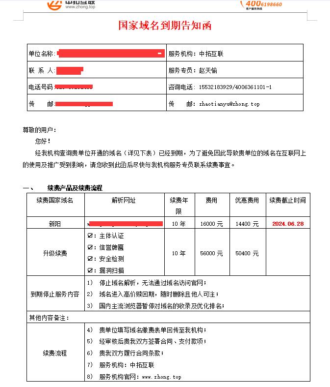 提醒廣大客戶警惕中拓互聯(lián)國(guó)家域名到期續(xù)費(fèi)套路